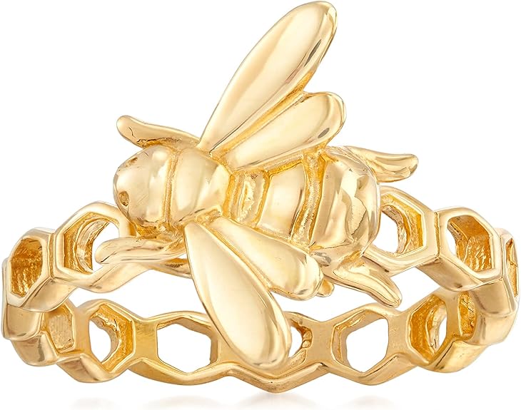 Ross-Simons Italian 18kt Gold Over Sterling Bumblebee Honeycomb Ring. Size 8