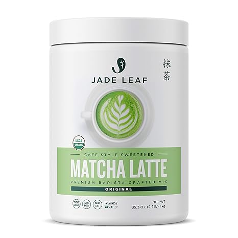 Jade Leaf Matcha Organic Cafe Style Sweetened Matcha Latte Green Tea Powder, Premium Barista Crafted Mix - Authentically Japanese (2.2 Pound Tin)