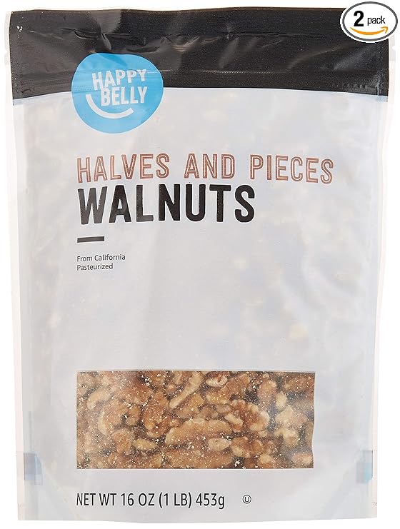 Amazon Brand - Happy Belly California Walnuts Halves and Pieces, 16 ounce (Pack of 2)