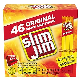 Slim Jim Smoked Meat Sticks, Original Flavor, 6g Protein Per Serving, Snack Size, 0.28 oz. (46 Count)