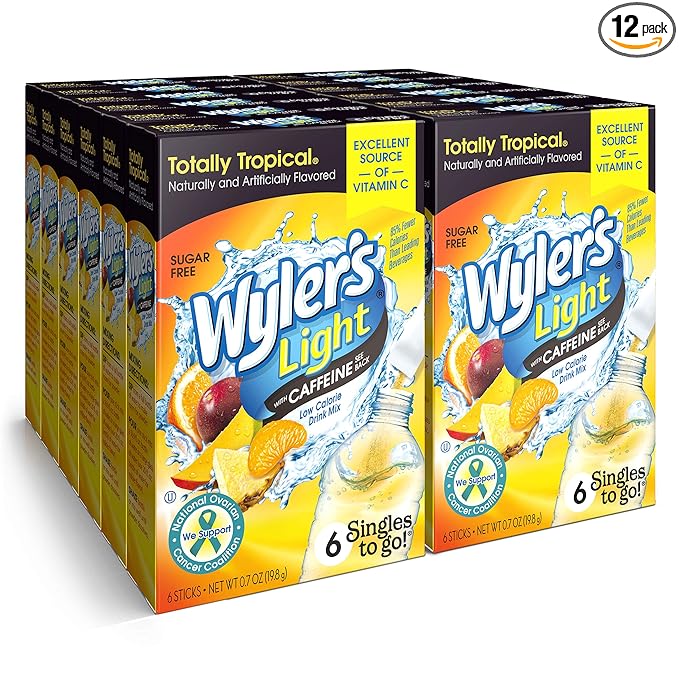 Wyler's Light Singles to Go Caffeinated Drink Mix - Totally Tropical Powder Sticks -72 Total Servings (Pack of 12)
