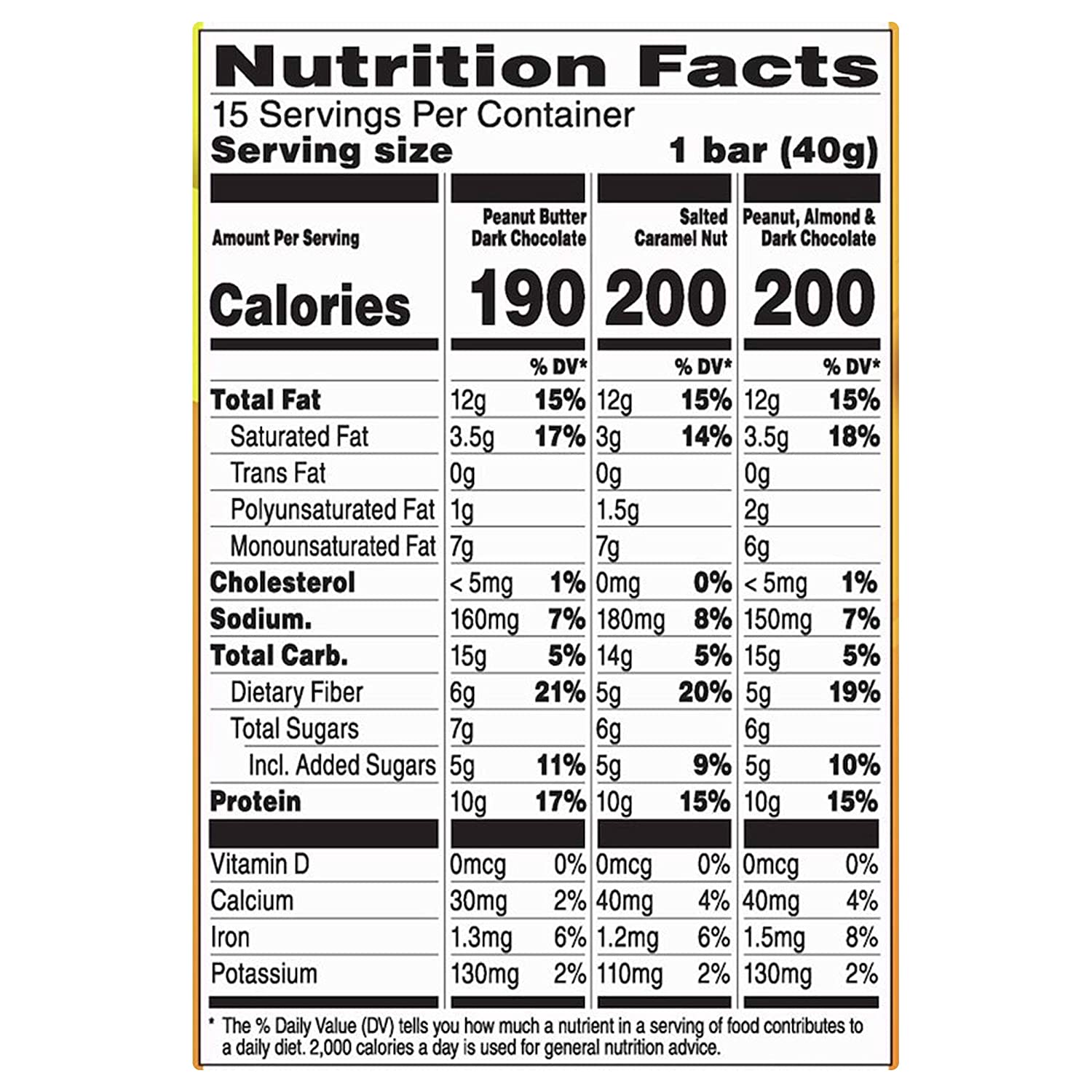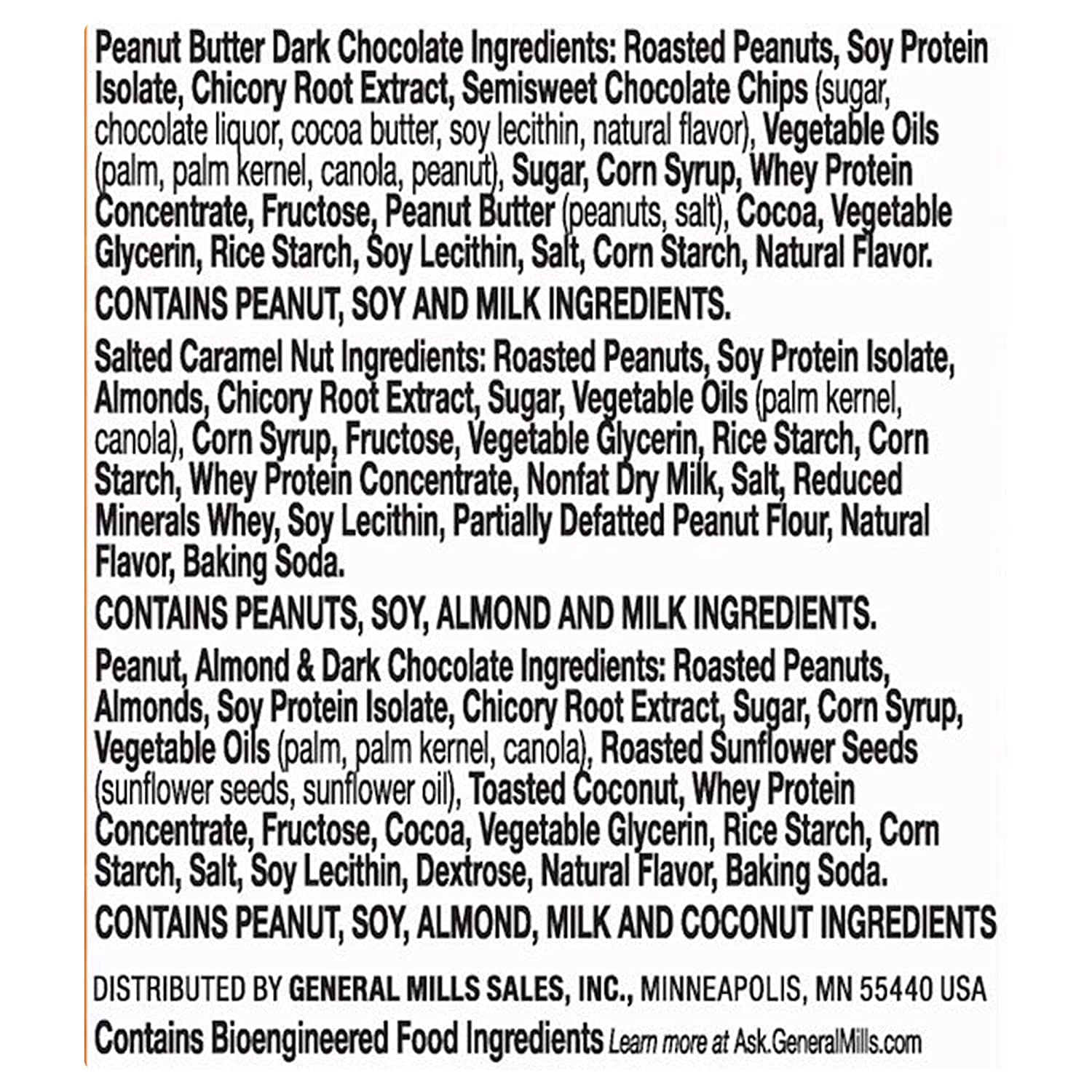 Protein that packs a punch. Nature Valley Chewy Protein Granola Bars are packed with 10 grams of protein, making them the perfect snack to keep you going. Convenient bars for snack time or an on-the-go invigorating treat. Gluten-free and perfect for the pantry, lunch box, and hiking trail. Made with no artificial flavors, artificial colors, or high fructose corn syrup. At Nature Valley, we believe that what you put in is what you get out. So when you need to be great out there, you can rely on us for real energy, wherever and whenever you need it. Energy you can depend on. Variety Pack contains 15 bars in total, five Peanut Butter Dark Chocolate, five Salted Caramel Nut, and five Peanut Almond Dark Chocolate.