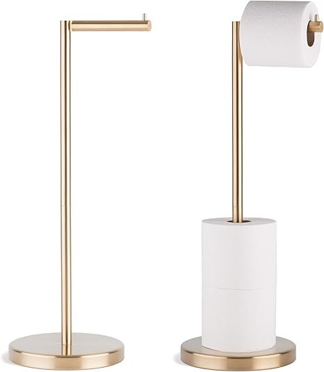 MARMOLUX ACC Free Standing Toilet Paper Holder Stand with Storage for 4 Rolls of Toilet Tissue for Bathroom, Stainless Steel Luxury Brushed Gold, 1pc - Bathroom Sets - Toilet Paper Storage