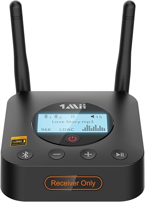 1Mii B06Pro+ HiFi Bluetooth Receiver, Hi-Res Bluetooth 5.1 Wireless Audio Adapter w/LDAC for Home Stereo, Long Range Bluetooth Receiver aptX HD Low Latency Volume Control LCD Display