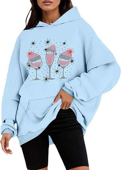 Oversized Christmas Sweatshirt for Women Casual Hoodies Long Sleeve Solid Lightweight Pullover Tops Loose Blouse