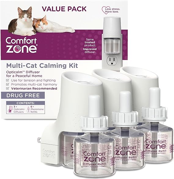 COMFORT ZONE Value Kit; 3 Multicat Diffusers & 6 Refills; Cat Calming Pheromone; Reduce Stress, Aggression, Fighting, Urine Marking, Scratching