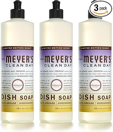 MRS. MEYER'S CLEAN DAY Liquid Dish Soap, Biodegradable Formula, Compassion Flower, 16 fl. oz - Pack of 3