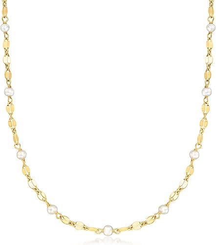 Ross-Simons Italian 4-4.5mm Cultured Pearl Lumachina-Chain Necklace in 18kt Gold Over Sterling. 18 inches
