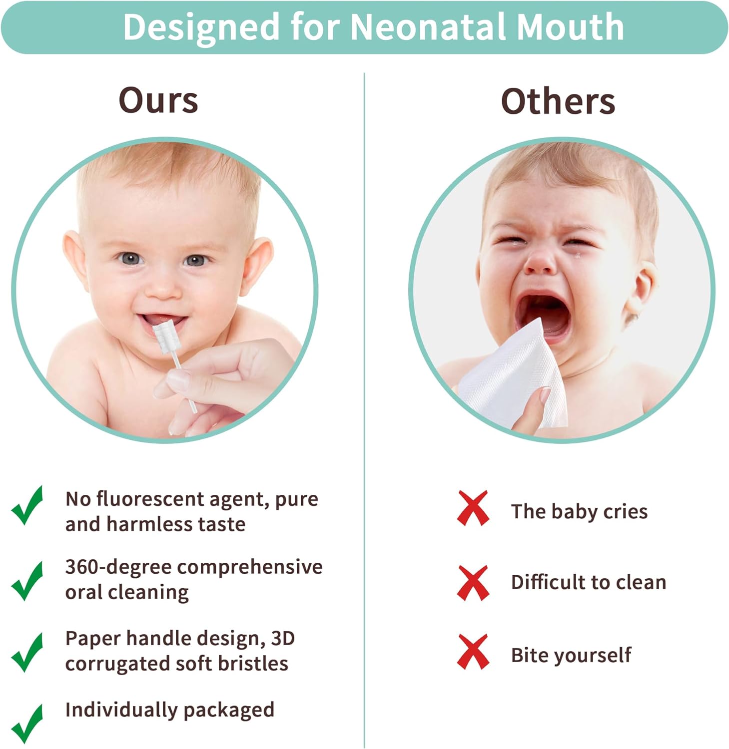 • Comfortable Material : This baby tongue cleaner toothbrush is made of 100% sterilized gauze and handle is made of food grade paper. BPA FREE , No additives.