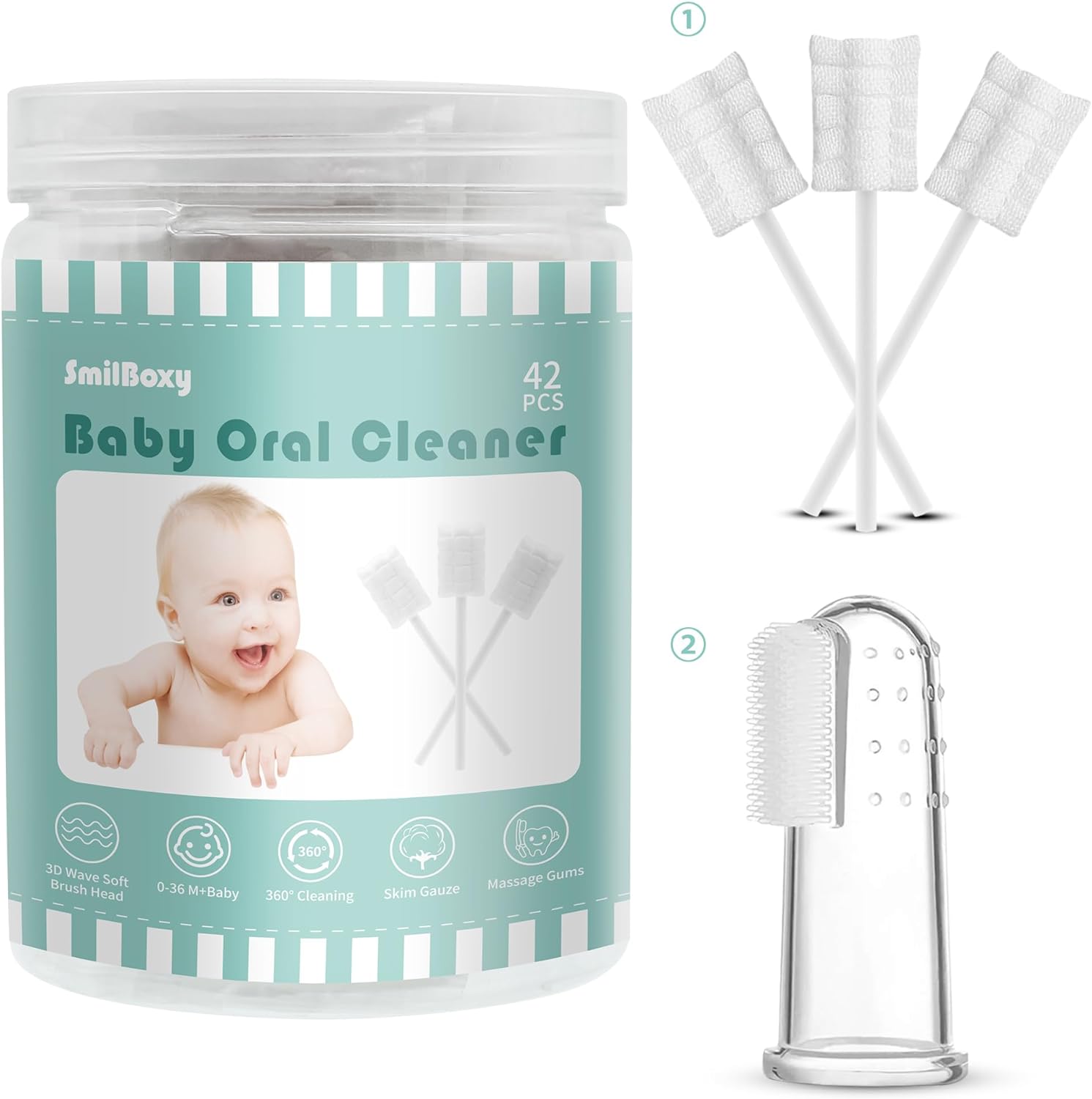 • Independent Individual Wrapped: Each baby gum cleaner is sanitized and hermetically sealed for disposable use. Package includes infant toothbrush 42PCS+1PC FREE soft Finger Toothbrush with case, suitable for 0-36 Month Baby. we recommend cleaning your baby's tongue and gums daily, even without teeth.