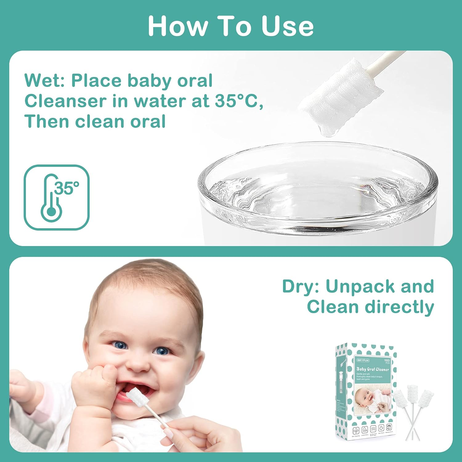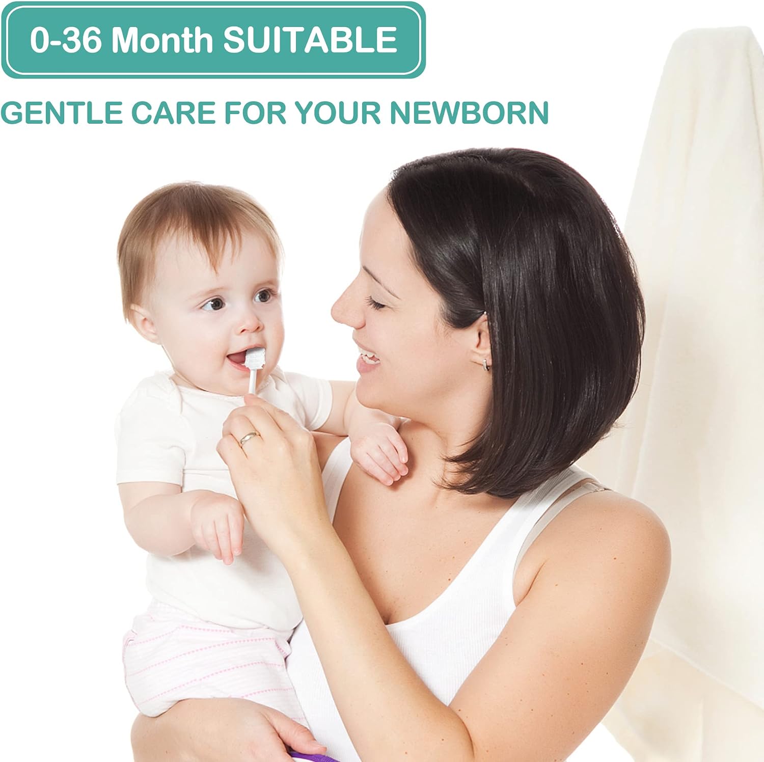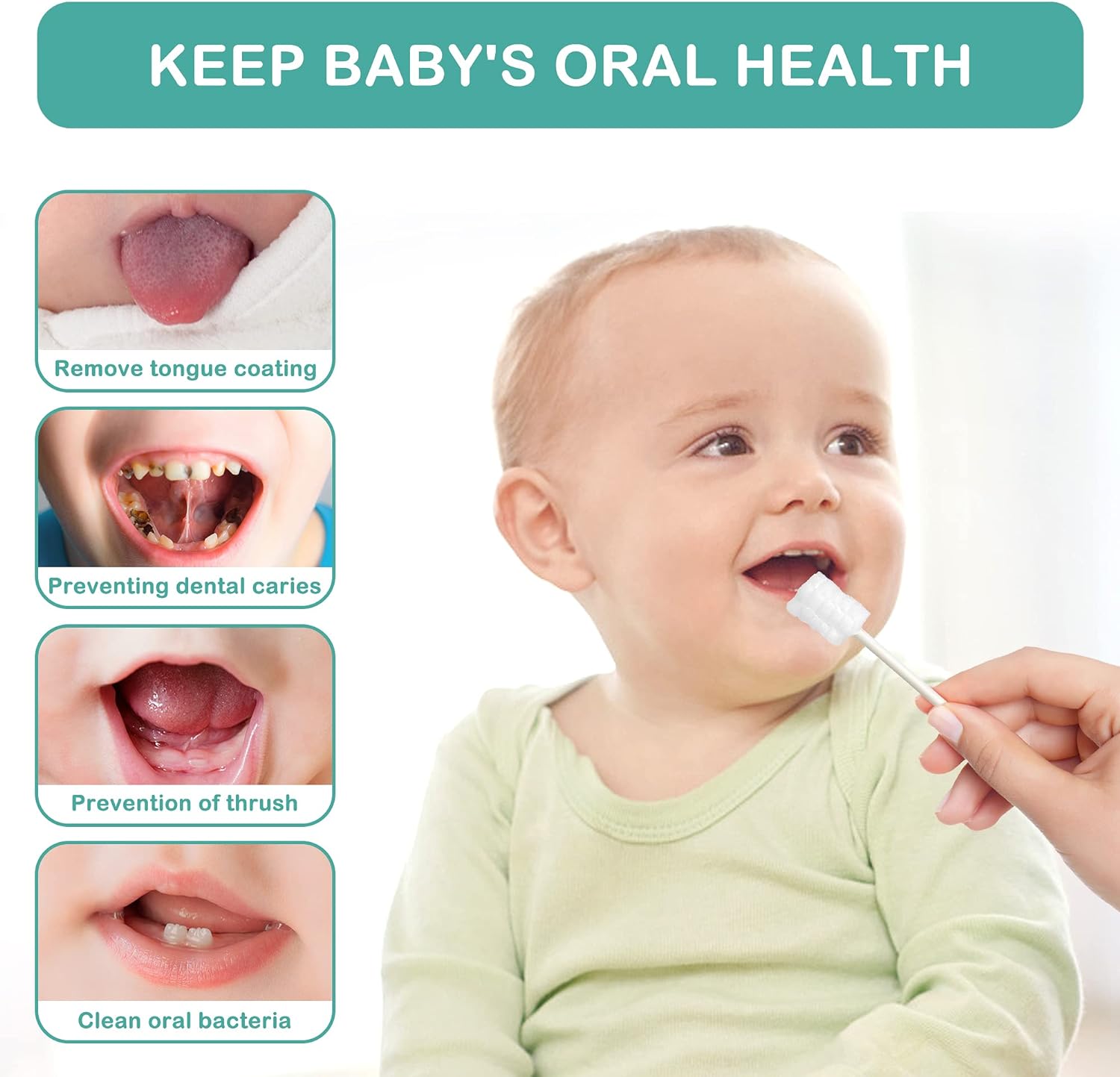 • 【Professinal Design】: Geyfun baby tongue cleaner swab are designed with a double suture fastening structure that won't fall off, 3D wave soft brush head made of swab-style brushes can clean the mouth 360°, making cleaning easier, stable and safe to use.