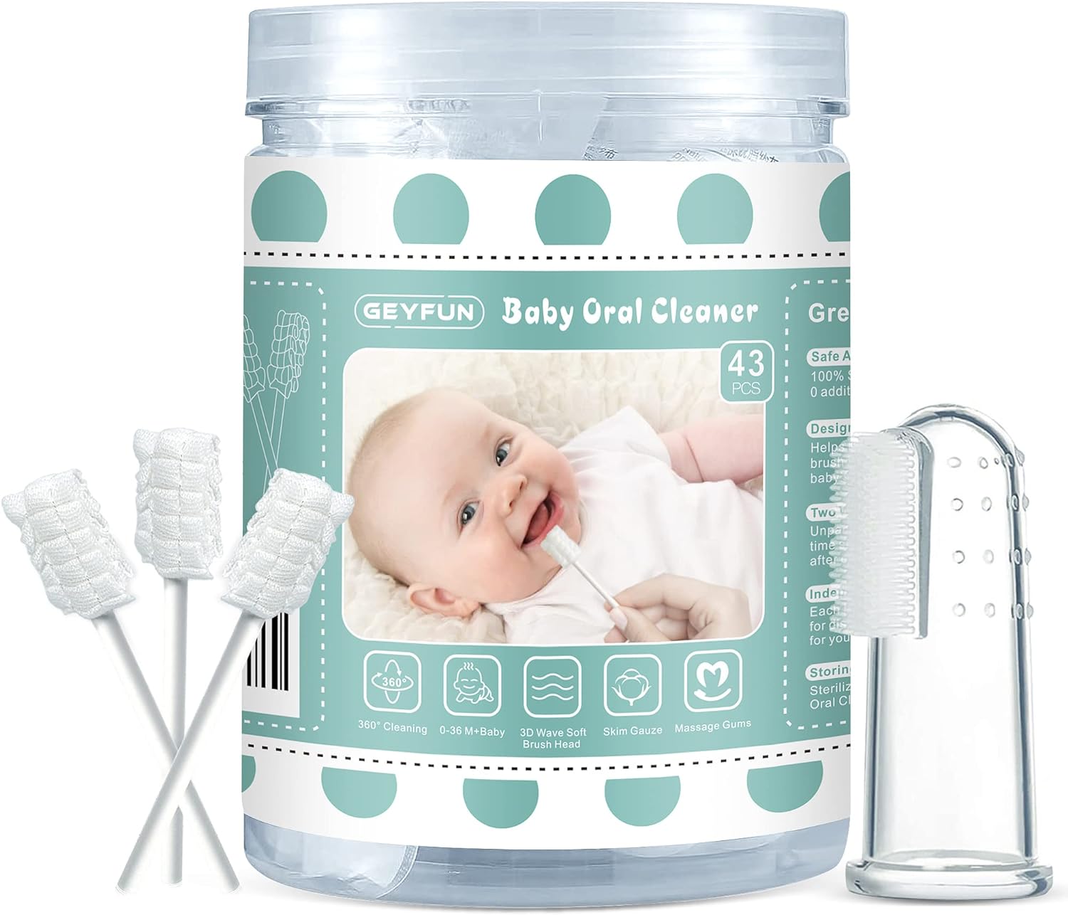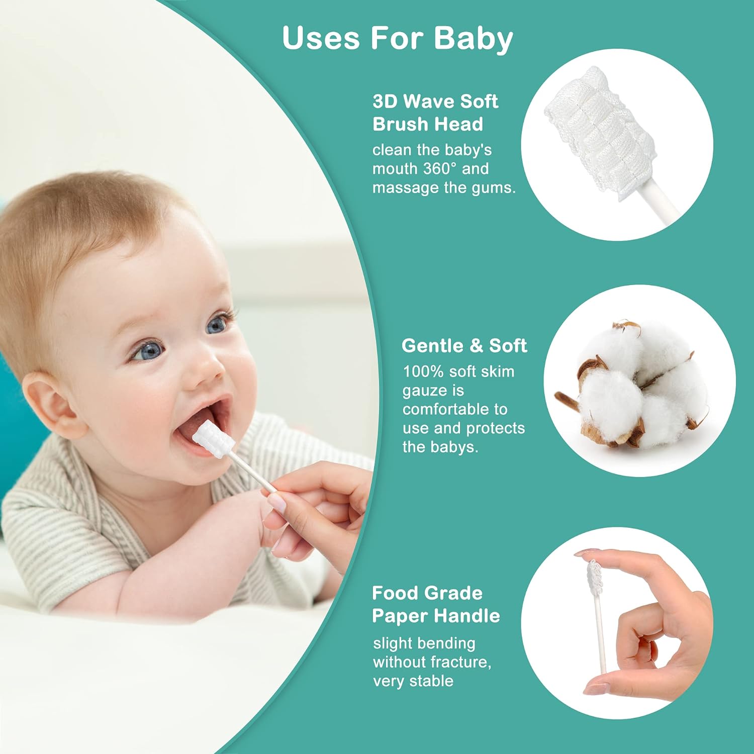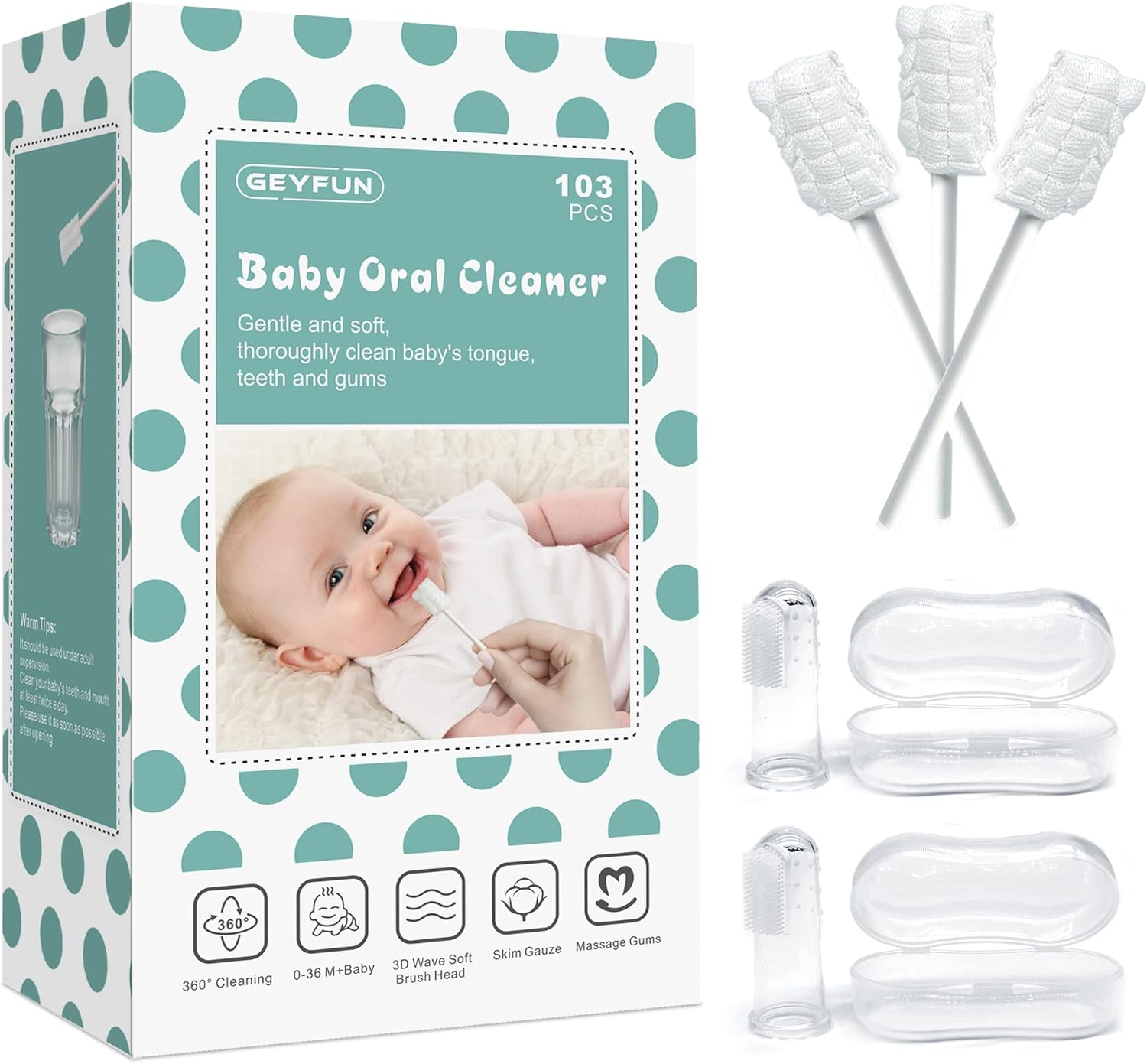 • 【Professinal Design】: Geyfun baby tongue cleaner swab are designed with a double suture fastening structure that won't fall off, 3D wave soft brush head made of swab-style brushes can clean the mouth 360°, making cleaning easier, stable and safe to use.