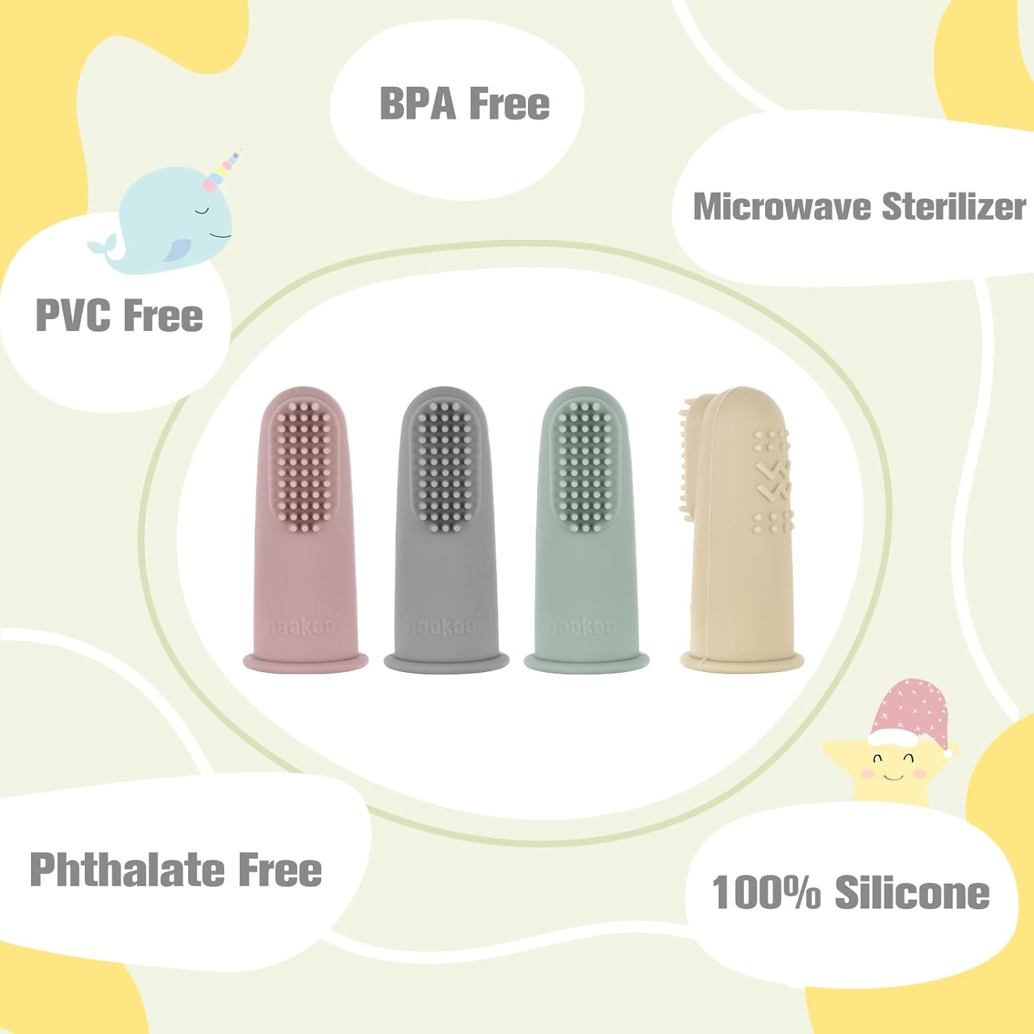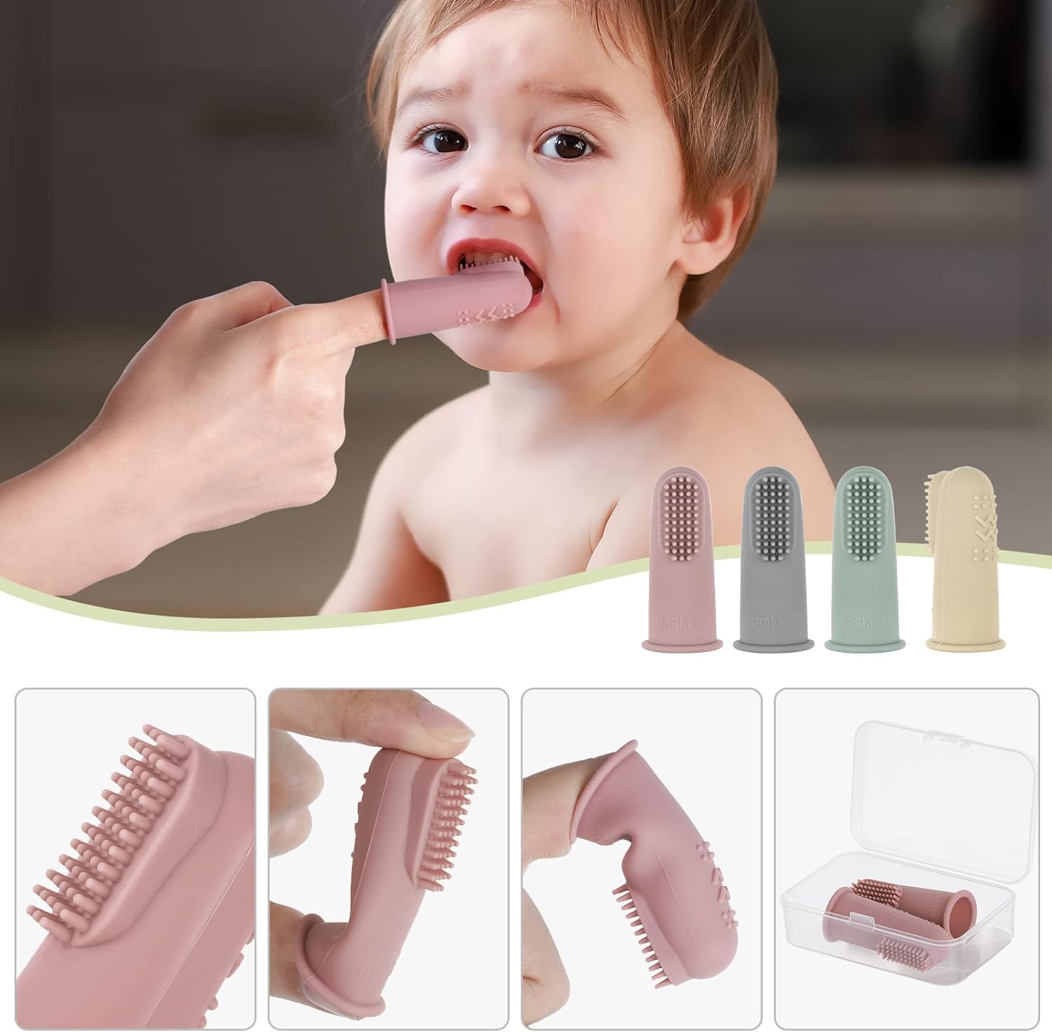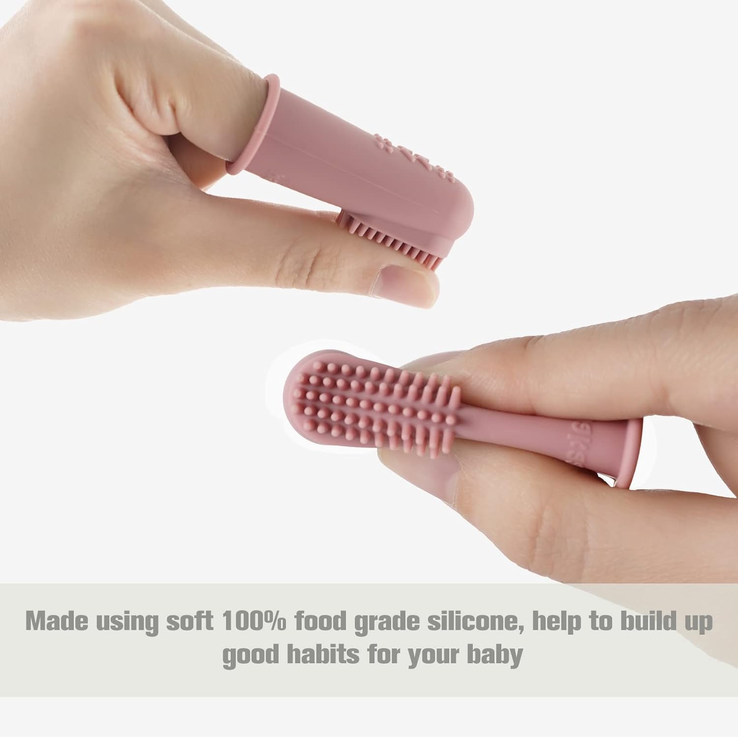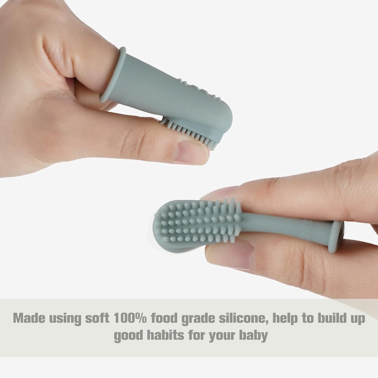 • 【FUNCTION】-Good Habit Forming: Helps train and develop good oral hygiene habits for babies and infants. Thick silicone wall to protect your finger when baby chomps down.