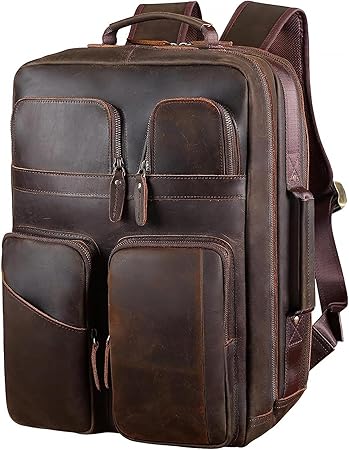 TIDING 17.3" Full Grain Leather Laptop Backpack for Men Multi Pockets Casual Daypack Business Travel Rucksack