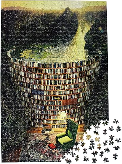 Moruska Puzzles for Adults 1000 Pieces Wooden Jigsaw Puzzle Challenge and Fun - Bookshelf Dam