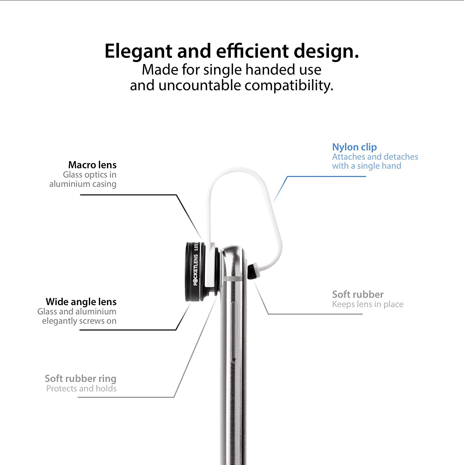 PocketLens 2-in-1 Macro & Wideangle iPhone Camera Lens, Universal Smartphone Accessories for Photography Enthusiasts