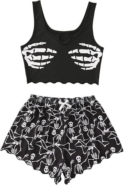 WDIRARA Women's Sleepwear Cute Print Lettuce Trim Cami and Shorts Pajama Set
