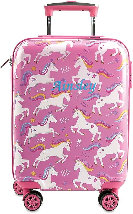 Lillian Vernon Unicorn Personalized Hard Shell Rolling Luggage for Kids, Travel Suitcase, 12 x 16