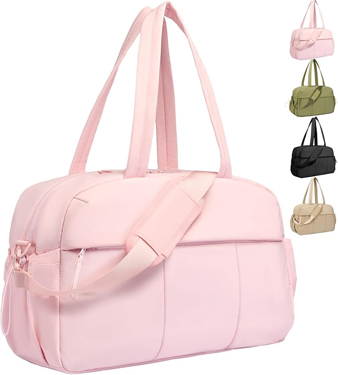 Gym Bag for Women, Carry on Bag with Wet Pocket, Lightweight Puffer Weekender Travel Bag, Water Resistant Quilted Travel Duffle Bag Overnight Bag, Pink