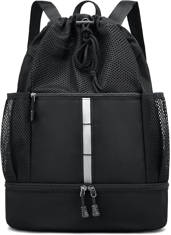 PinCute Drawstring Gym Bag for Men/Women - Mesh Beach Swim Bags Sports Backpack with Wet Pocket&Shoe Compartment, Lightweight