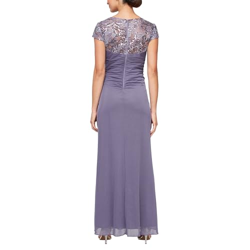 Alex Evenings Women's Long A-line Sweetheart Neck Mother of The Bride Dress (Petite and Regular Sizes), ICY Orchid Cap Embroidery