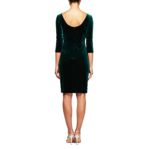 Alex Evenings Women's Short Velvet Cocktail Dress with Beading Detail (Reg Petite), Forest Green, 12P