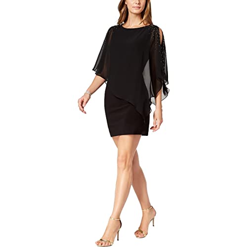 Xscape Womens Chiffon Beaded Cocktail and Party Dress Black 14