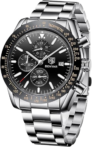 BY BENYAR Watch for Men Analog Quartz Chronograph Waterproof Luminous Designer Mens Wrist Watches Business Work Sport Casual Dress Watch with Silicone Strap Elegant Gifts for Men