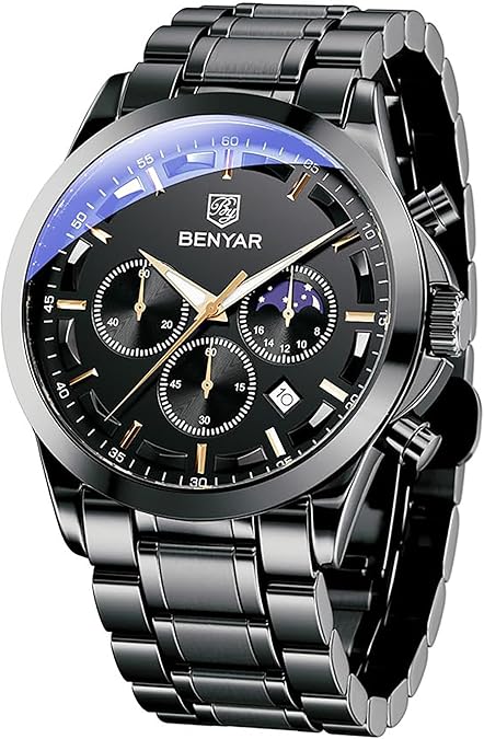 BY BENYAR Watches for Men Analog Watch Mens Watches Waterproof Watch Silver Watch Quartz Chronograph Date Men's Wrist Watches Stainless Steel Casual Luxury Gifts for Men Unique Mens Dress Watch