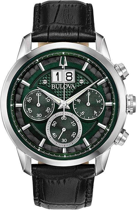 Bulova Men's Classic Sutton 6-Hand Chronograph Calendar Big Date Leather Strap Quartz Watch, Domed Mineral Crystal, 44mm