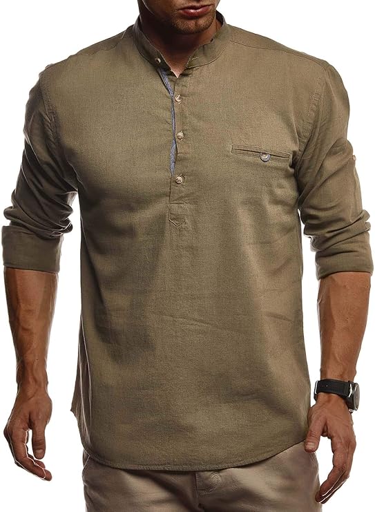 Leif Nelson Men's Short-Sleeved Shirt, Summer T-Shirt, Stand-up Collar, 100% Cotton LN3865
