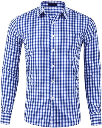 Men Plaid Cotton Casual Slim Fit Long Sleeve Button Down Dress Shirts