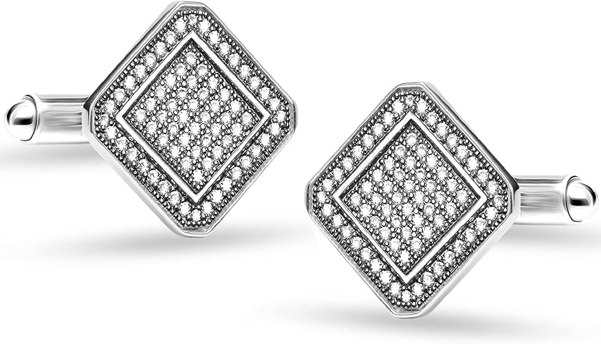 LeCalla 925 Sterling Silver Cufflinks for Men | Cubic Zirconia Square Cuff Links Gifts for Men, Husband | Shirt Cufflinks for Groom