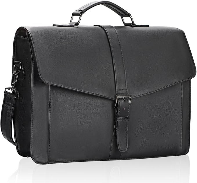 ESTARER Men's Leather Briefcase 17.3 Inch Laptop Messenger Bag for Office/Business/Travel, Professional Leather Computer Shoulder Bag, Black