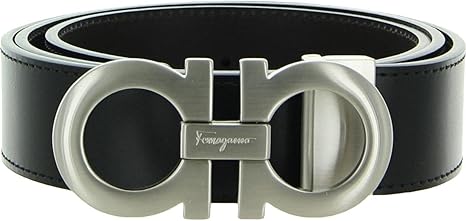 Salvatore Ferragamo Men's Black Brown Leather Reversible Silver Buckle Belt with Sheen (100)