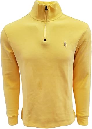 Polo Ralph Lauren Men Half Zip French Rib Cotton Sweater (Medium Yellow (Multi-Colored Pony)