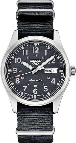 SEIKO SRPG31 Watch for Men - 5 Sports - Automatic with Manual Winding Movement, Blue-Gray Dial, Stainless Steel Case, Blue-Gray Nylon Strap, 100m Water Resistant, and Day/Date Display