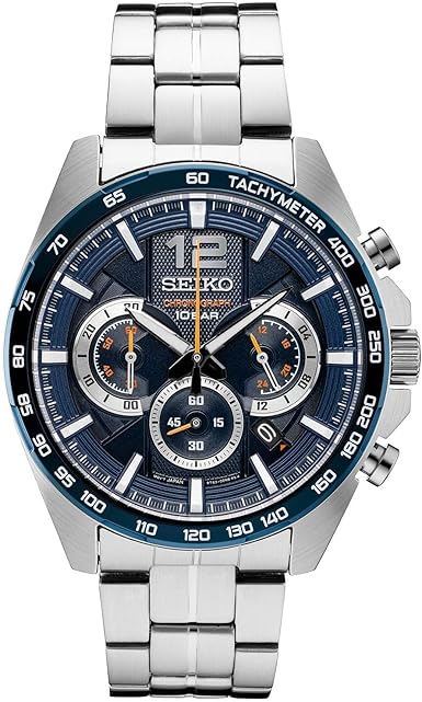 SEIKO SSB345 Watch for Men - Essentials - with Quartz Chronograph, Tachymeter Bezel, Blue Ion-Finish, Date Calendar, Stainless Steel Case and Bracelet, and 100m Water-Resistant