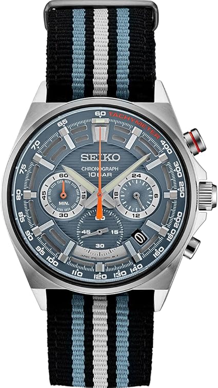 Seiko SSB409 Watch for Men - Analog, Blue Dial with Metallic and Orange Accents, Nylon Strap, Water-Resistant to 100m