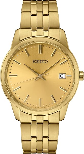 SEIKO SUR442 Automatic Watch for Men - Essentials - Champagne Dial, Stainless Steel Gold-Tone Finish - 100M Water Resistant