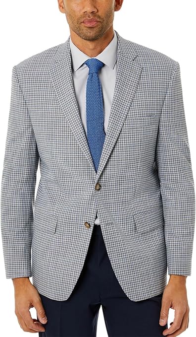 Lauren Ralph Lauren Mens Plaid Classic Fit Two-Button Blazer Gray 38R
