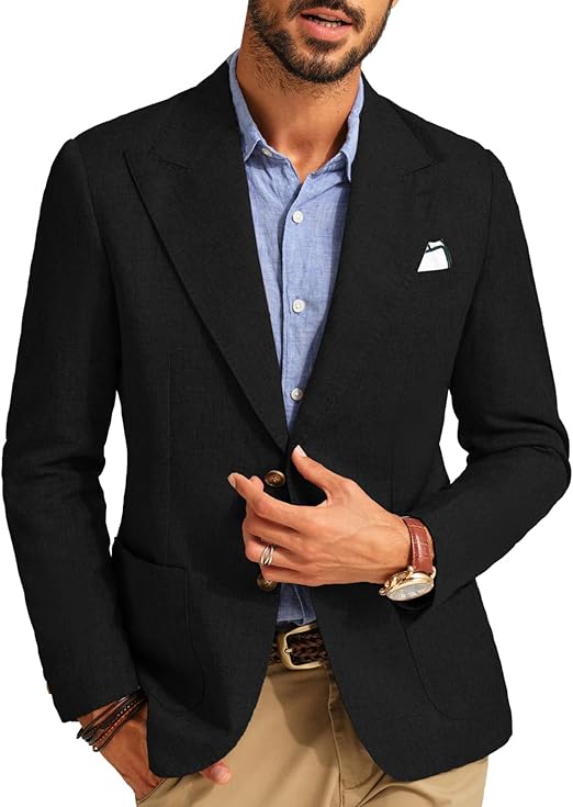 Mens Casual Sport Coats Two Button Suit Jacket with Pockets Lightweight Sport Coat Blazer Black