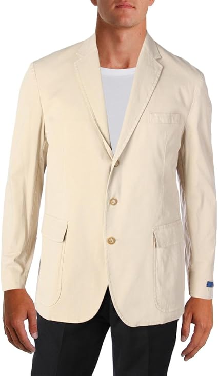 Ralph Lauren Mens Stretch Chino Three Button Blazer Jacket, Beige, 40 Regular