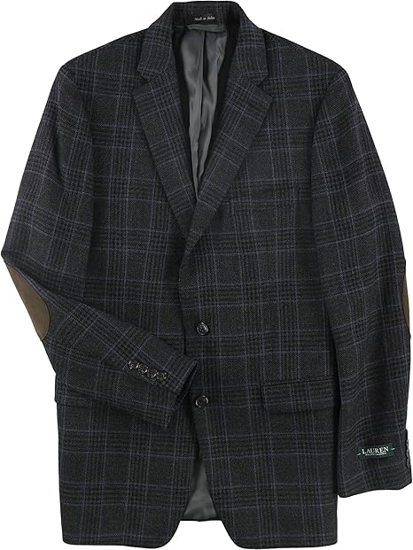 Ralph Lauren Mens Stretch Two Button Blazer Jacket, Black, 40 Long
