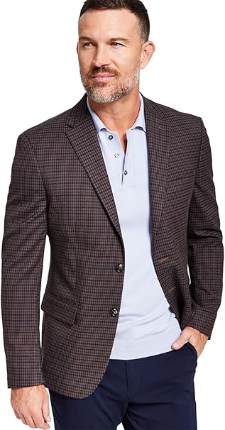 Tommy Hilfiger Mens Modern-Fit Check Blazer 40 Short Burgundy/Brown