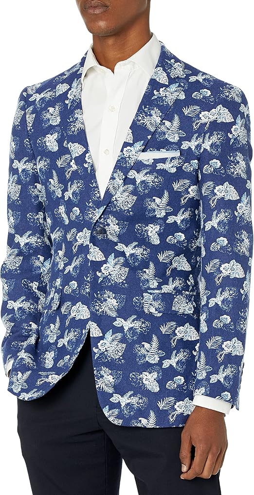 U.S. Polo Assn. Men's Cotton Linen Blend Sport Coat, Blue Floral, 36 Regular