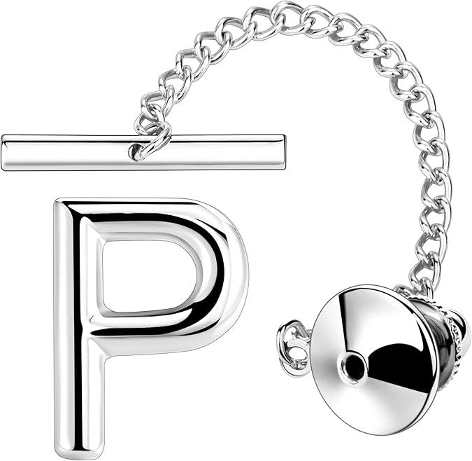 AMITER Men Tie Tack Initial Gold/Silver Tie Pin with Chain Clips for Necktie, Bow Tie & Hat