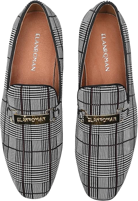 ELANROMAN Men's Gold Buckle Loafers Fashion Pull-on Penny Party Wedding Shoes