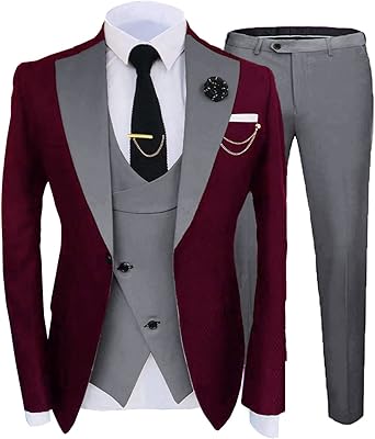 Mens Fashion Slim Fit 3 Piece Suits 2024 Elegant Party Blazer Vest Pants Set EXZ089