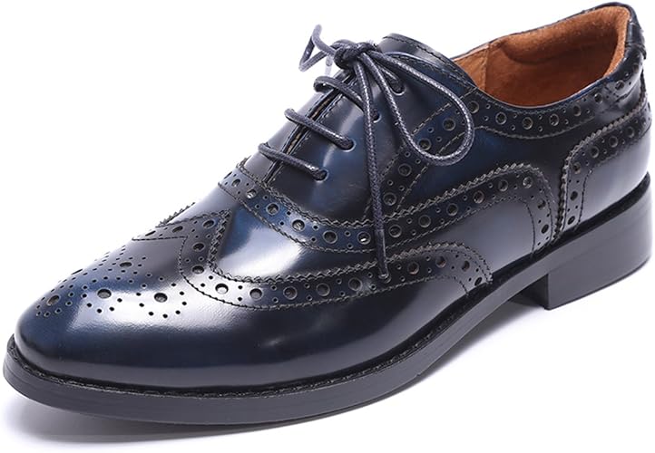 Mona flying Women's Leather Perforated Lace-up Oxfords Brogue Wingtip Shoes for Ladies Women